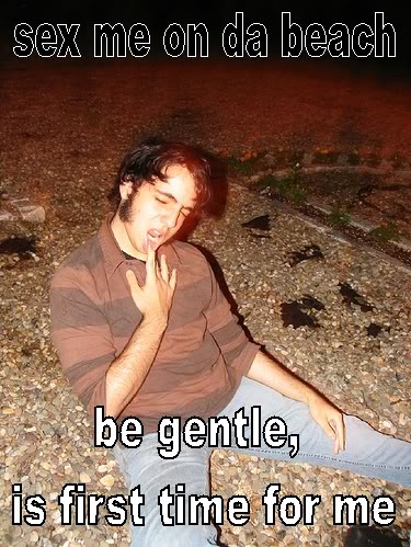 | Quote (Brett @ Oct. 08 2007,12:22) | | He's just another reason why this thread is an instant bomb. Next time squeeze some smart wine from your brain grapes before wasting a potentially awesome idea. |